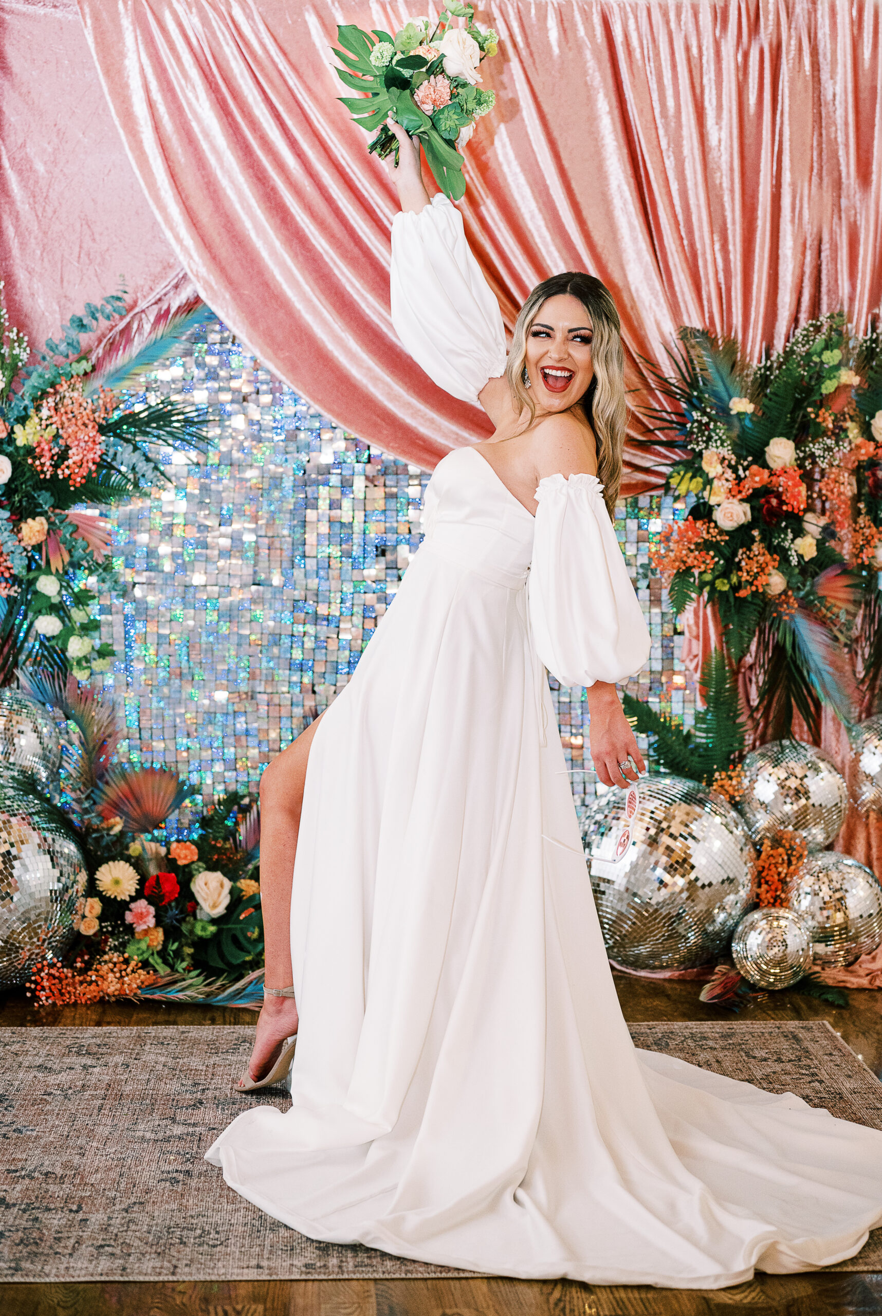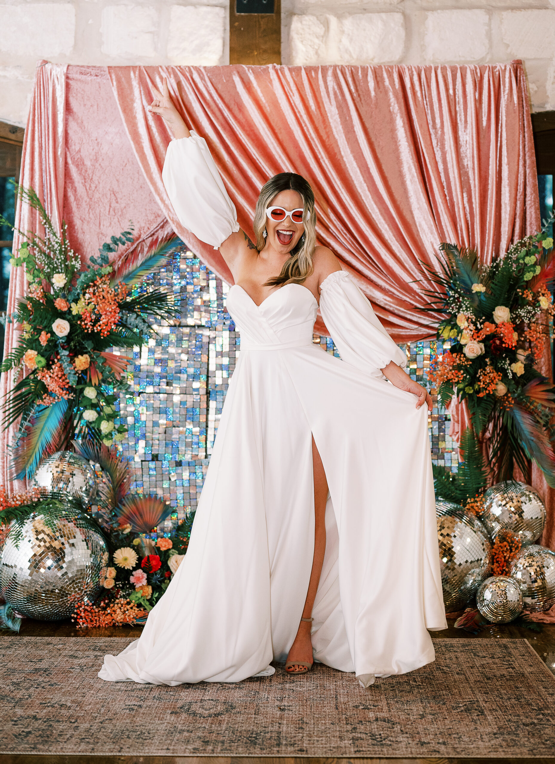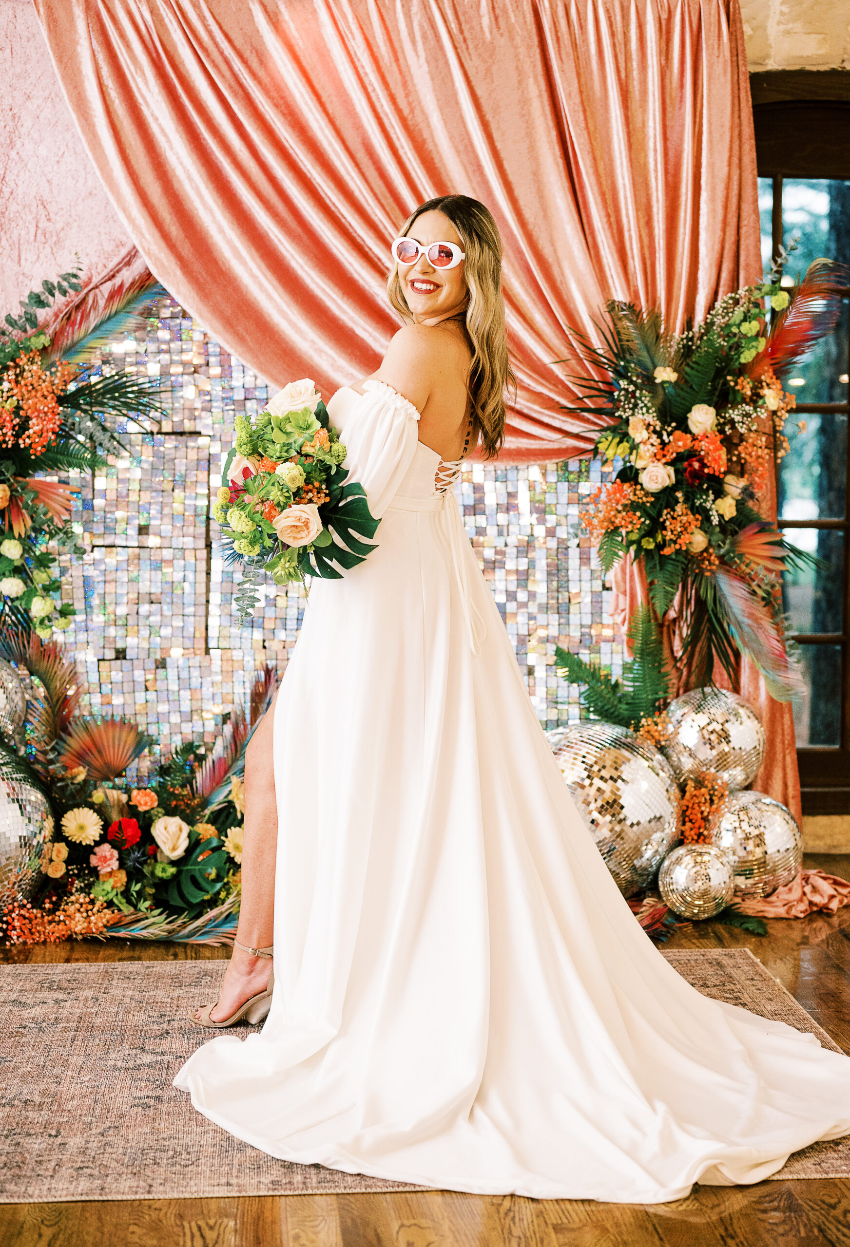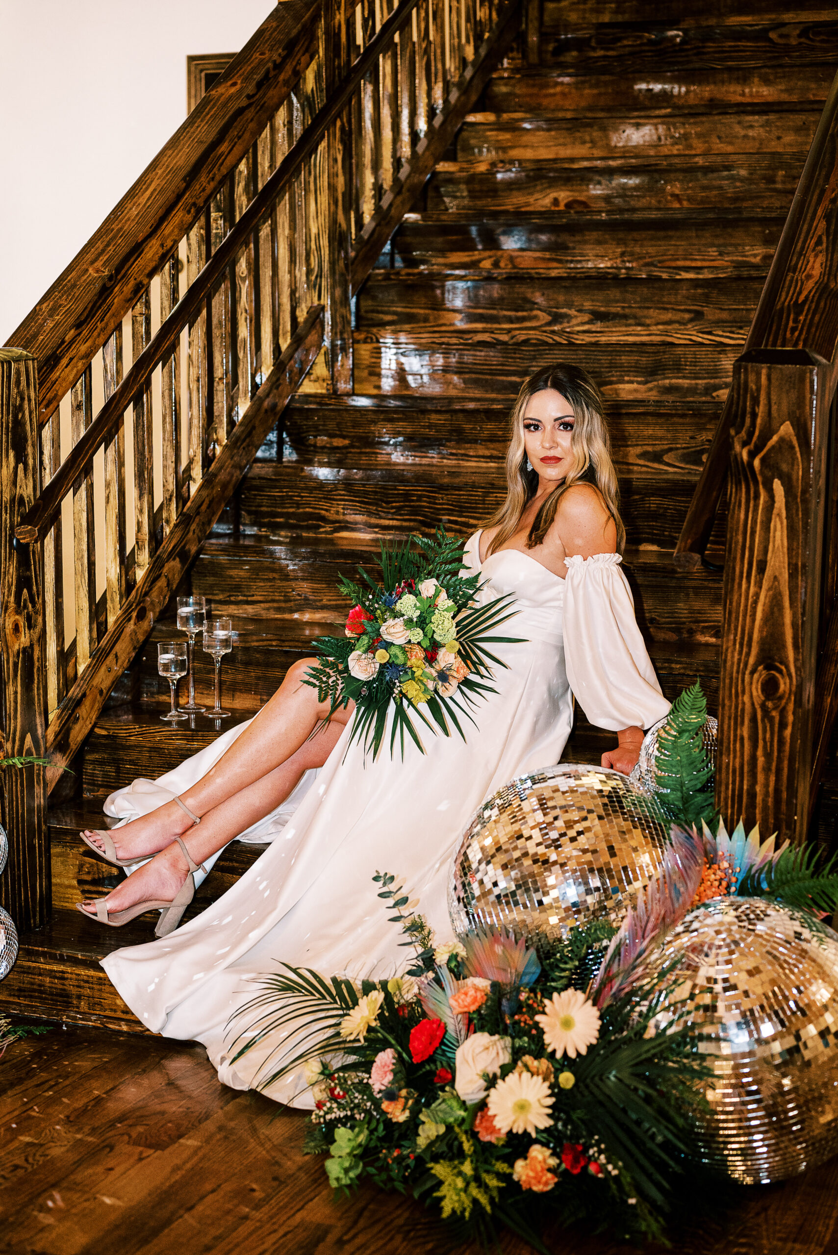 Disco isn’t dead yet baby!! In fact, recently we’ve seen disco elements coming back into weddings in a big way! So we planned a vibrant and fun disco-styled shoot! Inspired by vibrant colors, shimmering lights, and some groovy vibes, The Springs Marketing Team, The Springs in Magnolia’s managers, and some amazing vendors brought this dream to life!