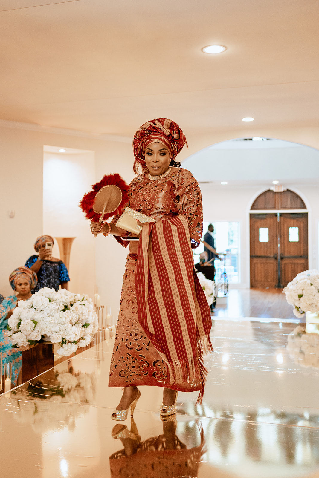 Textiles, patterns, and colors are a very important part of African and African American cultural heritage, which is why we tend to see them incorporated into black weddings. Some couples even opt to wear African royal fabrics, called Kente, which makes them King and Queen for a day. We see many couples at The Springs wear a typical suit or tux for the ceremony and change into these incredibly beautiful outfits for the reception. Check out Uzo’s awesome Kente reception outfit from his wedding at The Springs in Lake Conroe!