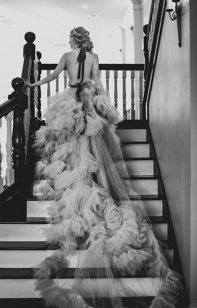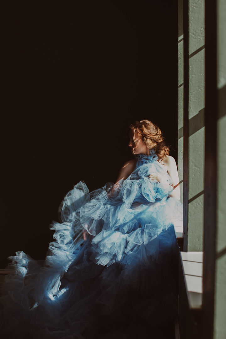 I arrived at the venue at 8 am to start my hair and makeup. There were about 7 brides modeling, so it was a packed house in the bridal suite that morning! I was assigned a look that I like to call a whimsical Cinderella. I had a gorgeous tousled updo that looked AMAZING in photos and a unique pearl theme for my makeup. My hair and makeup paired perfectly with the gorgeous Millia London gown the planner had me wear. This gown covered me in blue tulle ruffles from head to toe. Seriously, I got to live a dream of being photographed in that stunning dress!