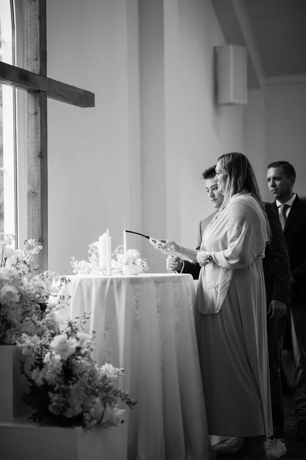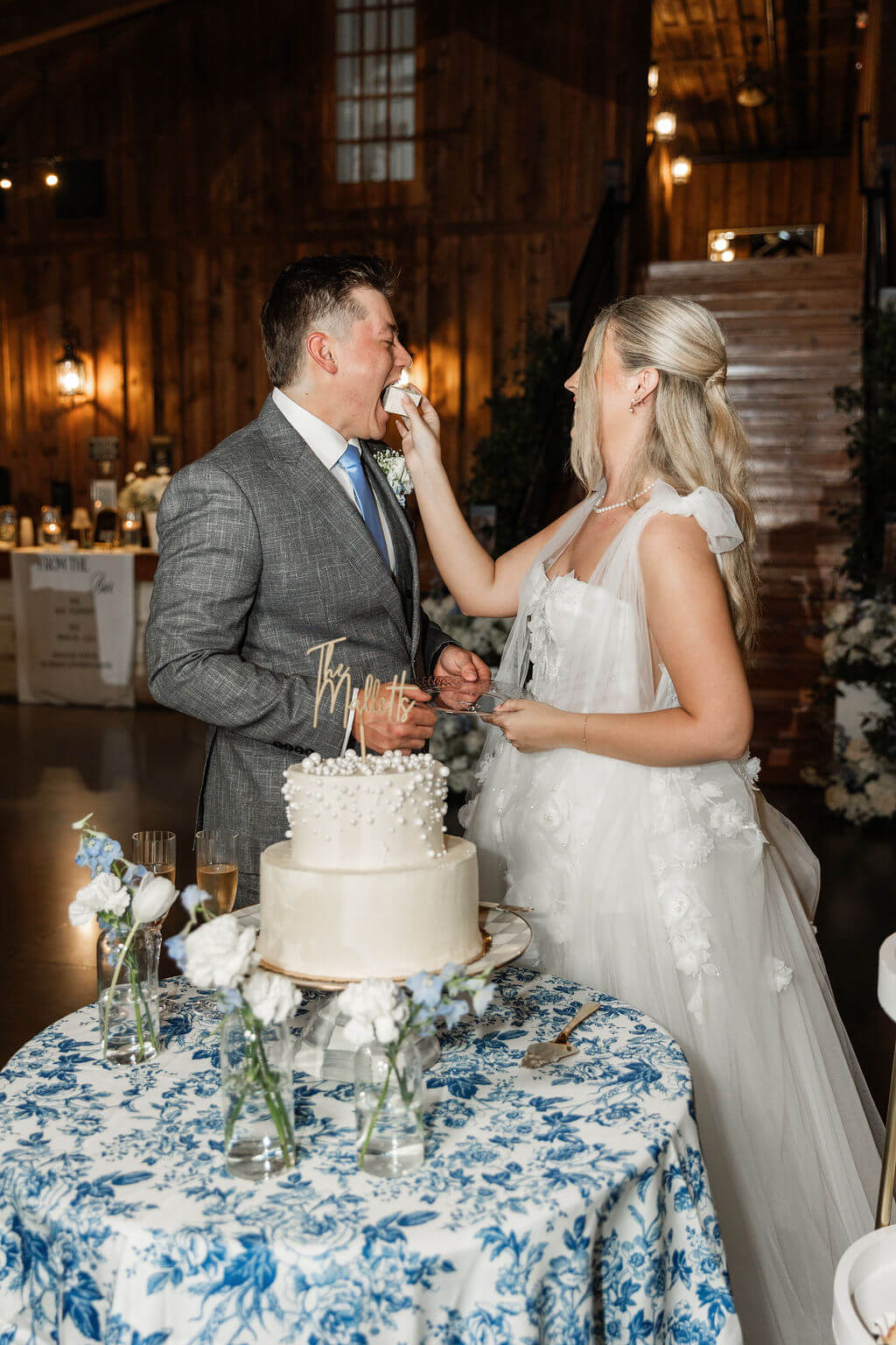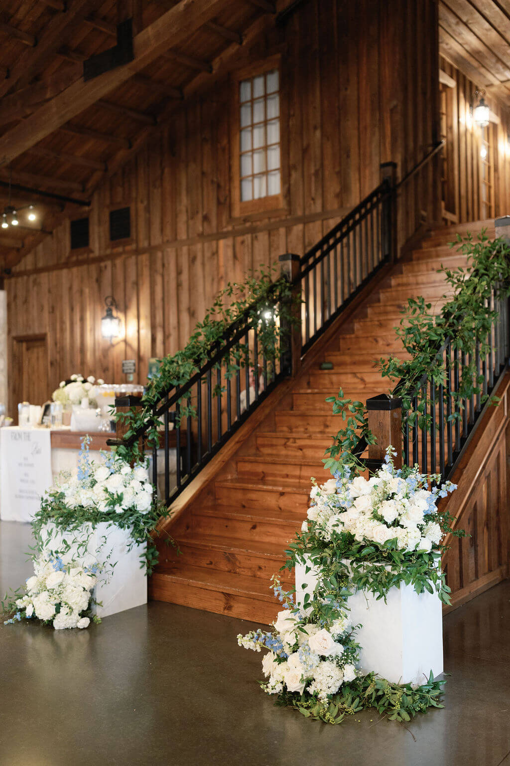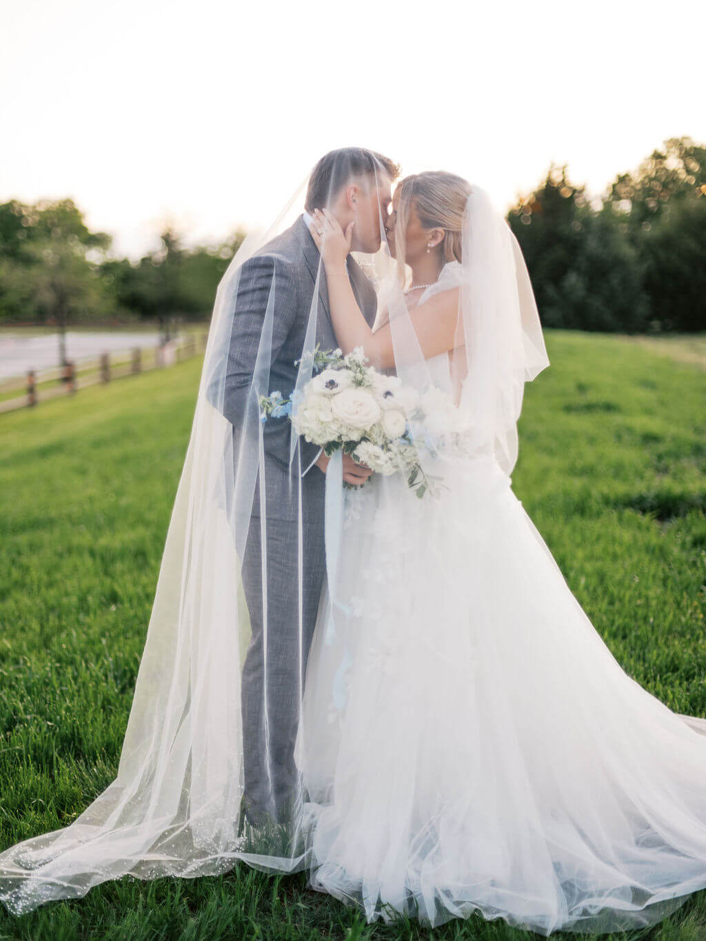 When it came time to start planning, Hannah leaned fully into the experience, drawn to every detail from the very beginning. Aurora Grove at The Springs in Norman was the first and only venue they toured, and it felt immediately like it was the place for them. The space reflected both of their personalities and the rest fell into place with ease. Hannah found her gown at Chantilly, and together they had already chosen rings that felt true to them. Their vision took shape around a French-inspired aesthetic, something soft and romantic, grounded in spring. Shades of blue layered with white and gold created a palette that felt both refined and whimsical.