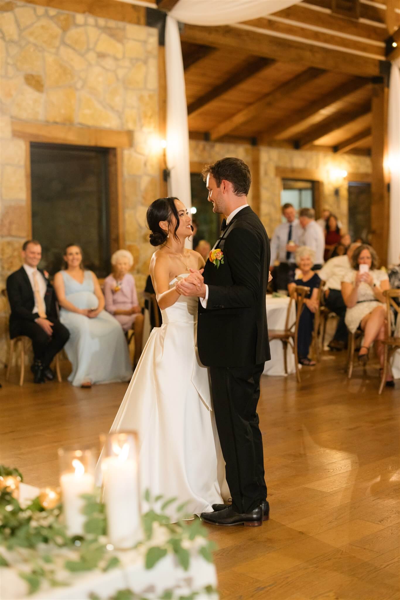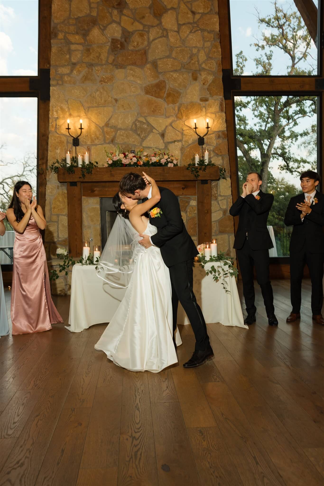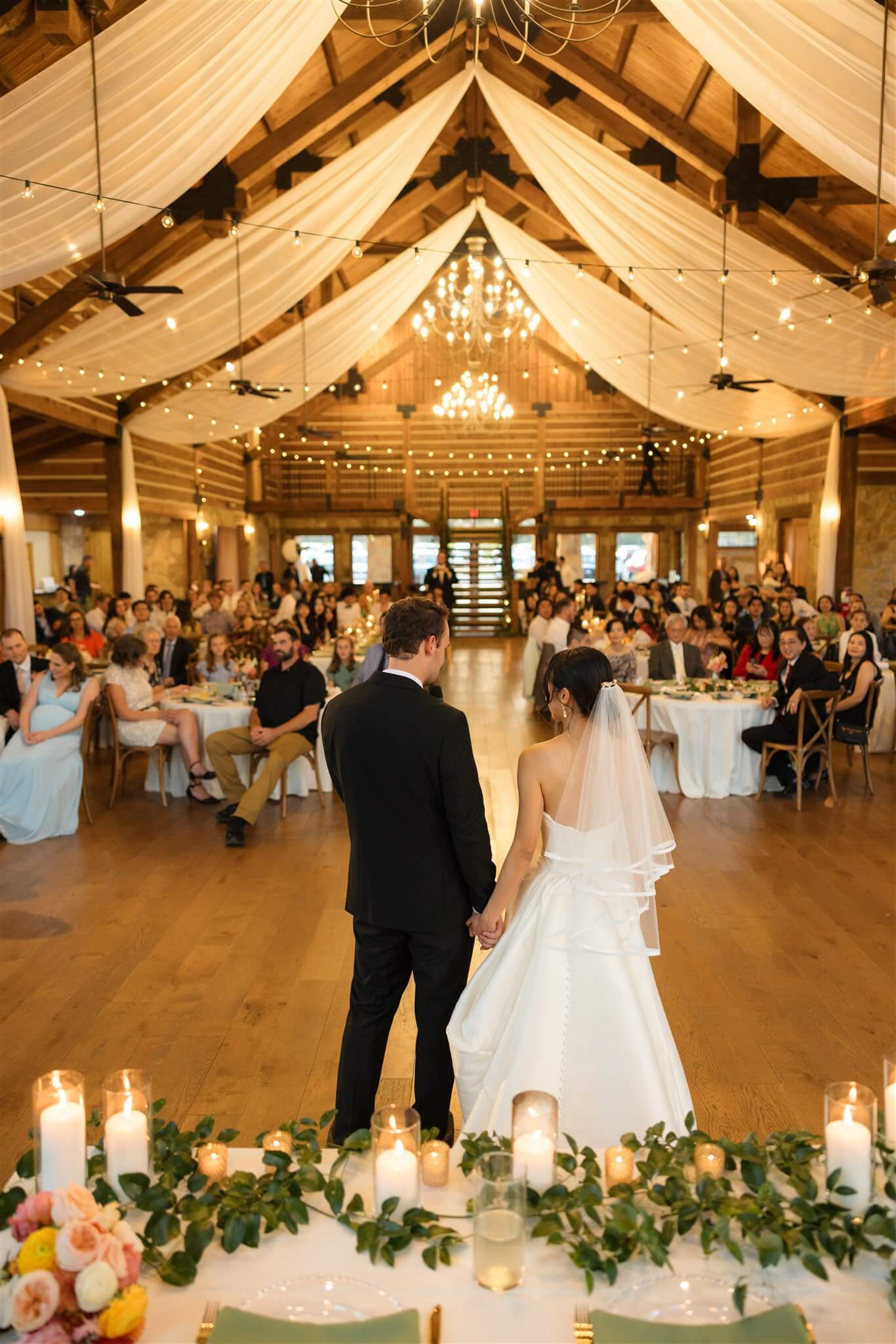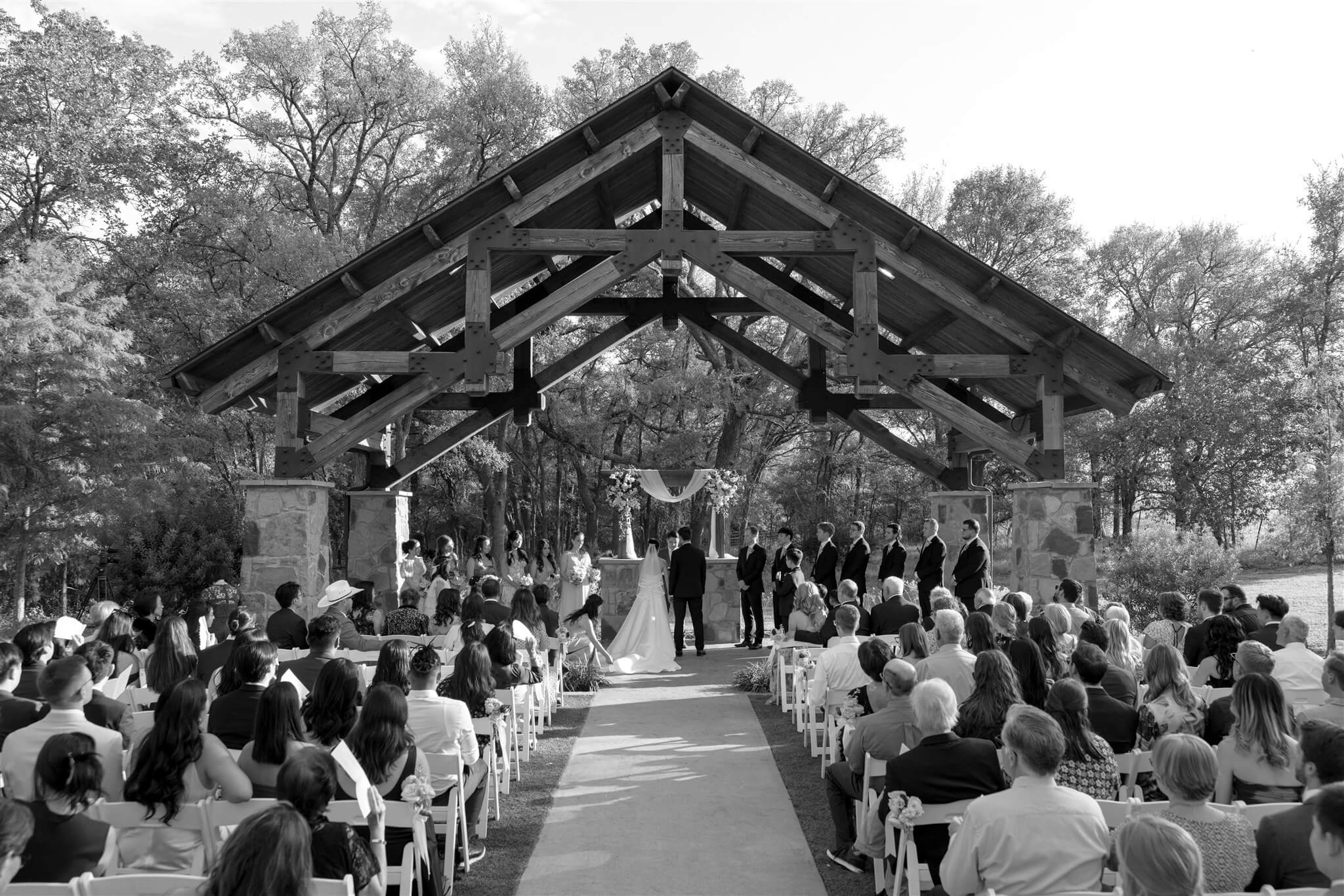 Set beneath the trees in at The Springs in Alvarado’s Timberview Lodge, The Ploosters’ wedding day unfolded across a venue designed for both outdoor ceremonies and indoor receptions, allowing each moment to move with ease. The aisle, framed by natural greenery and a wood-beamed pavilion led to a floral-adorned altar where vows were exchanged in soft, open light. Bright, seasonal florals added warmth throughout, bringing color to the landscape without overpowering it. As the evening shifted indoors, the reception space introduced a more intimate atmosphere, where exposed wood interiors and ambient lighting carried the celebration into the night. Take a look at this stunning wedding and save for your spring or summer wedding inspo.